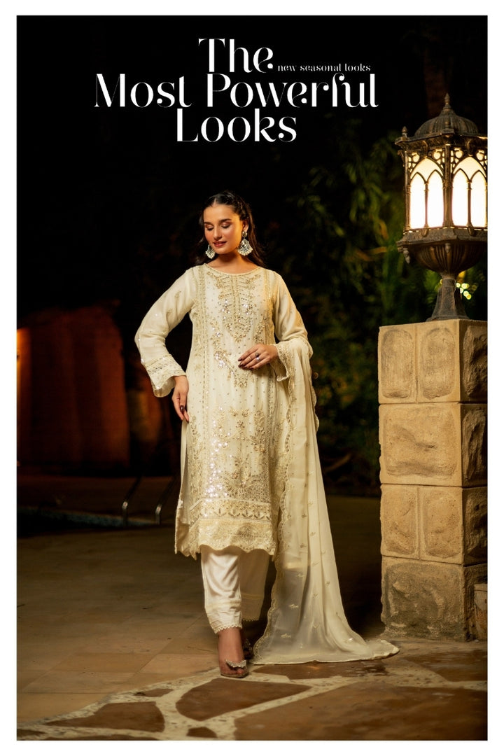 Shine bright with this luxurious gold-toned ensemble. Rich fabric with intricate gold embroidery creates a regal and festive look—perfect for weddings, receptions, and special evening events.