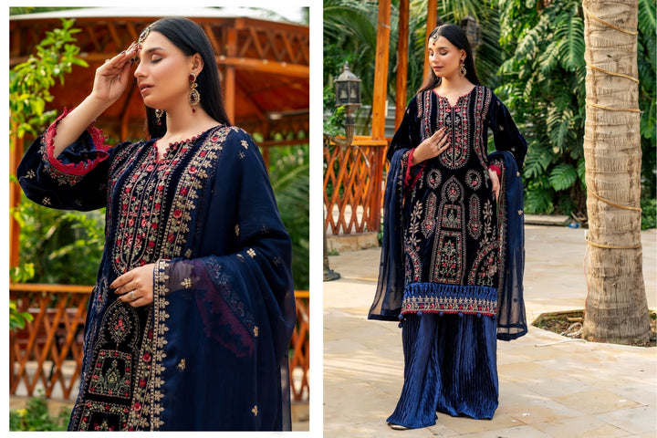A deep ruby-red outfit crafted with graceful golden threadwork, giving a rich and glamorous festive appearance. Designed to stand out in wedding functions, this dress offers a perfect blend of bold colour and delicate embroidery. The soft, flowy silhouette enhances beauty while keeping the look premium and elegant.